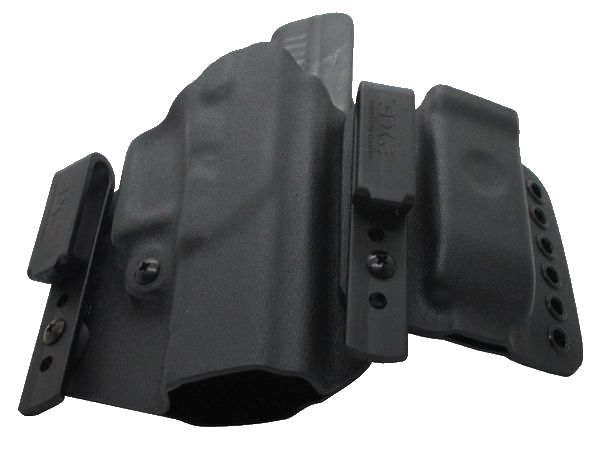 Edge Custom Carry’s Multi-Carry holster can easily be adjusted to carry Appendix Inside Waist Band, Inside Waist Band & Outside Waist Band. It has adjustable cant and adjustable riding height. This holster is tuckable when carried in the IWB or AIWB positions. You can also choose options to accommodate Suppressor Height Sights and an Optic / RMR cut. This holster come with one set of loops but additional loops can be bought for other carry options. You can also add a Aluminum Claw to this holster to assist conceal-ability when carrying in the appendix position. Carrying a weapon mount light? No problem, we also manufacture this holster as a light bearing option. The Single Mag Carrier can be attached to this holster if you want to carry a holster and mag carrier in the Appendix Inside Waist Band position.